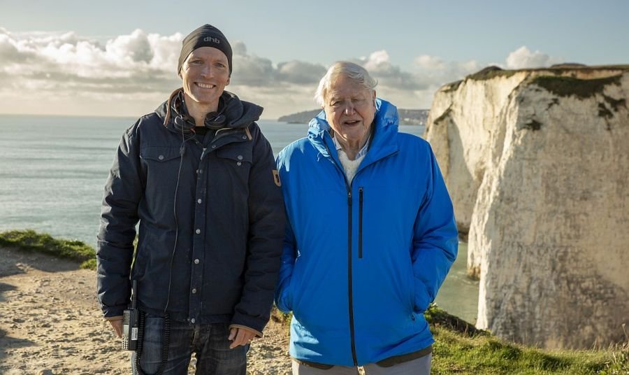 La pregunta final de esta entrevista exclusiva fue sobre el presentador del documental, pues Attelborough acaba de cumplir 99 años. A lo que Nowlan reveló que «es extraordinario. Ojalá se refleje en pantalla lo extraordinario que es. Es una leyenda, todo lo que uno podría esperar y soñar que sería. He conocido a jóvenes de 20 años con mucha menos paciencia al filmar que David, de 99. Es la voz de la naturaleza y nos la ha estado mostrando durante casi toda su vida. Su nombre significa confianza. Significa verdad. Cuando dice algo, sabes que puedes creerlo. Pero trabajar con él es un placer absoluto. Además de ser el mejor narrador y naturalista del mundo, y de haber visto más del mundo que nadie, también es extremadamente humilde y un oyente excepcional. Te preguntará por tus propias historias y querrá hablar de ti. Pero, en esencia, nunca quiere hablar desí mismo, sino del tema que lo preocupa, que es el océano. De ahí provienen su pasión y su presencia. Y este es el mensaje más grande que nos ha traído. En este largometraje único reúne toda su experiencia viendo el mundo. Recuerdo haber filmado con él en la playa, en un día de invierno muy frío, y él soltaba estas líneas directamente a la cámara con increíble fuerza, emoción e intimidad en una playa gris del sur de Inglaterra. A principios de marzo hacía un frío glacial. Era simplemente brillante. Un profesional de primera».