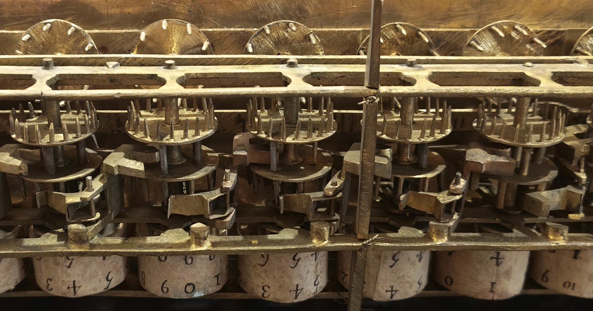 El aparato, que servía para realizar operaciones aritméticas básicas y cálculos topográficos, conserva sus ruedas dentadas originales, salvo ocho piezas añadidas en distintas épocas: cuatro en el siglo XIX y cuatro más instaladas recientemente por un restaurador.