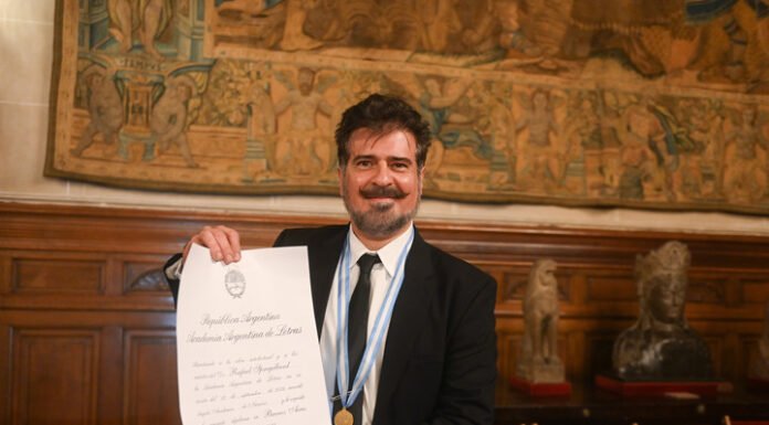 El prestigioso dramaturgo, traductor y director Rafael Spregelburd quedó formalmente incorporado a la Academia Argentina de Letras (AAL). La distinguida ceremonia se realizó este jueves en el Palacio Errázuriz, sede de la Academia, en avenida del Libertador 1902 (CABA).Rafael Spregelburd, actor y dramaturgo argentino fue incorporado a la Academia Argentina de Letras. Foto: Federico...